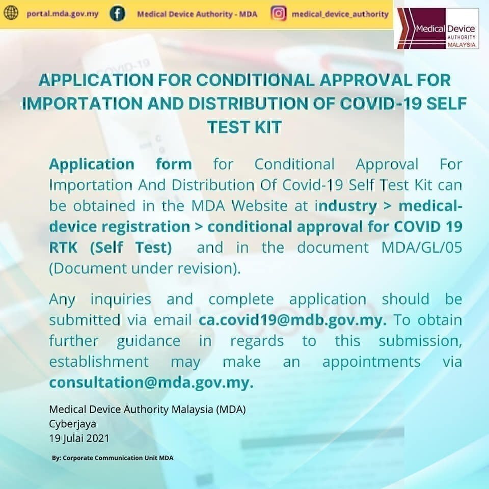 Application For Conditional Approval For Importation And Distribution Of Covid-19 Self Test Kit
