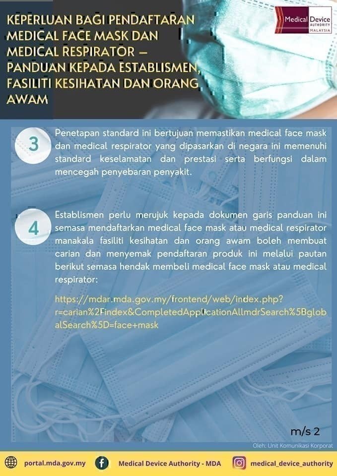 Keperluan Bagi Pendaftaran Medical Face Mask Dan Medical Respirator - Panduan Kepada Establismen, Fasiliti Kesihatan Dan Orang Awam