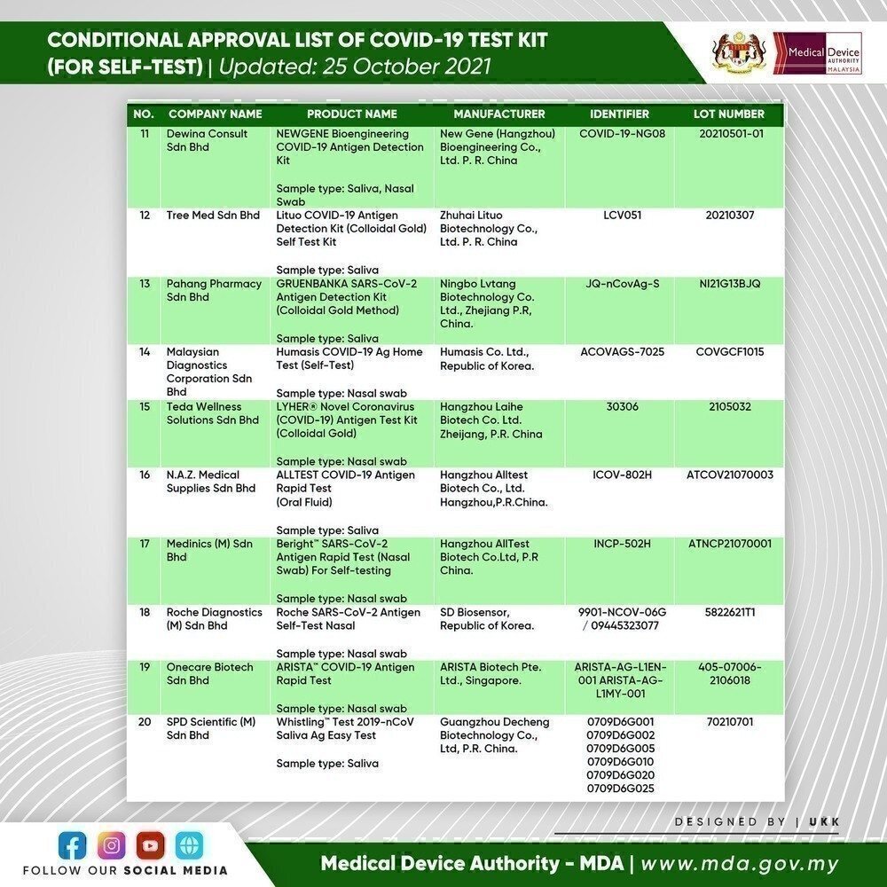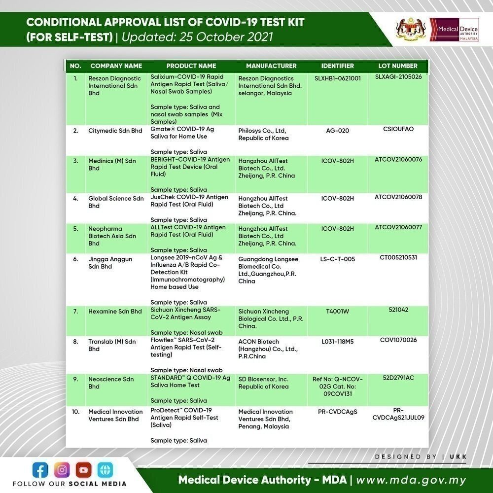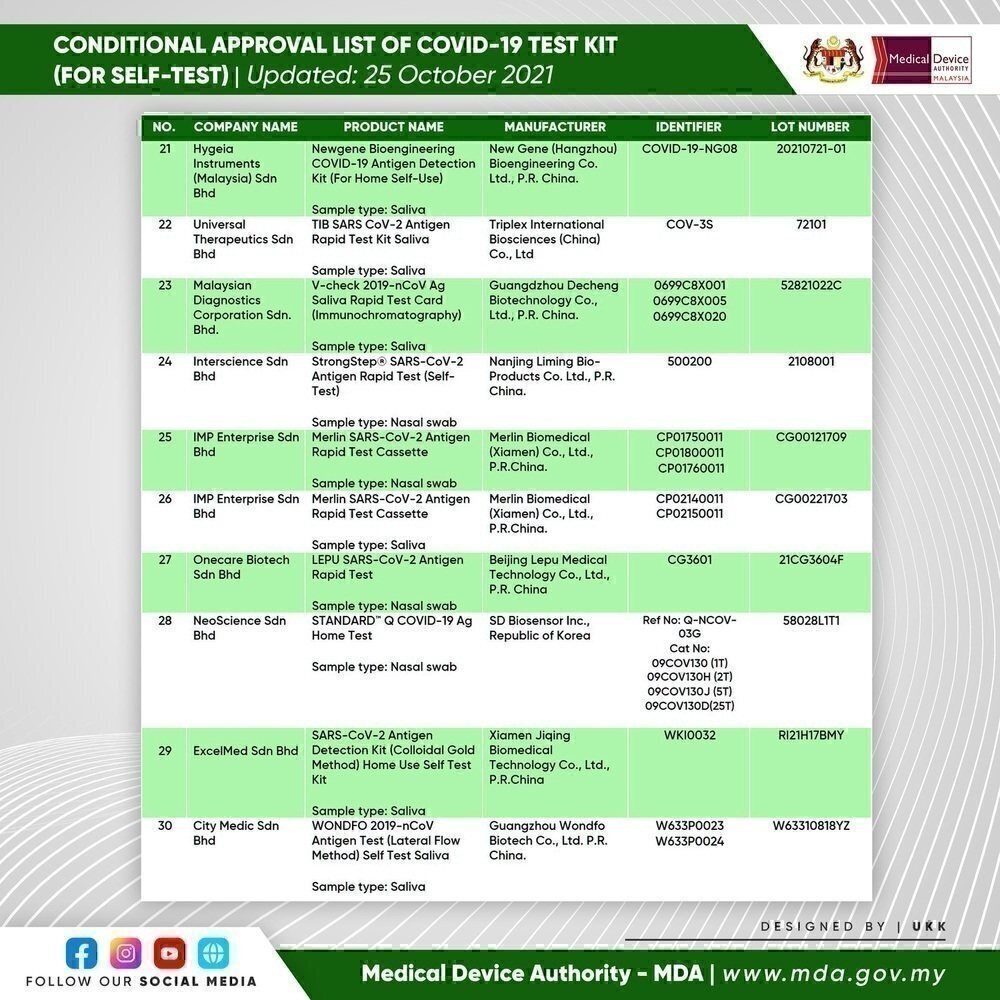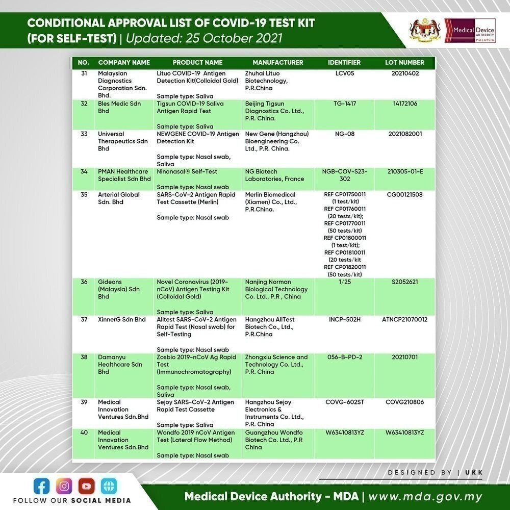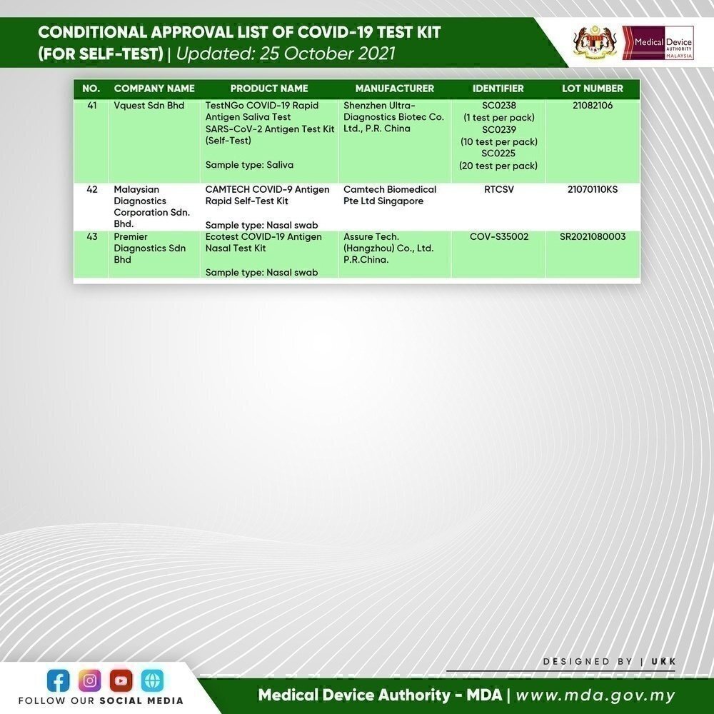 CONDITIONAL APPROVAL LIST OF COVID - 19 TEST KIT (FOR SELF TEST)