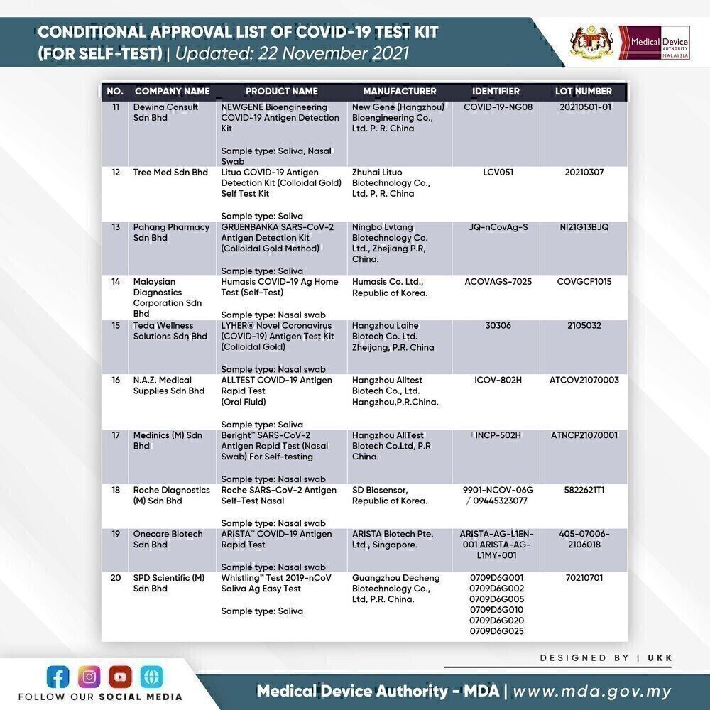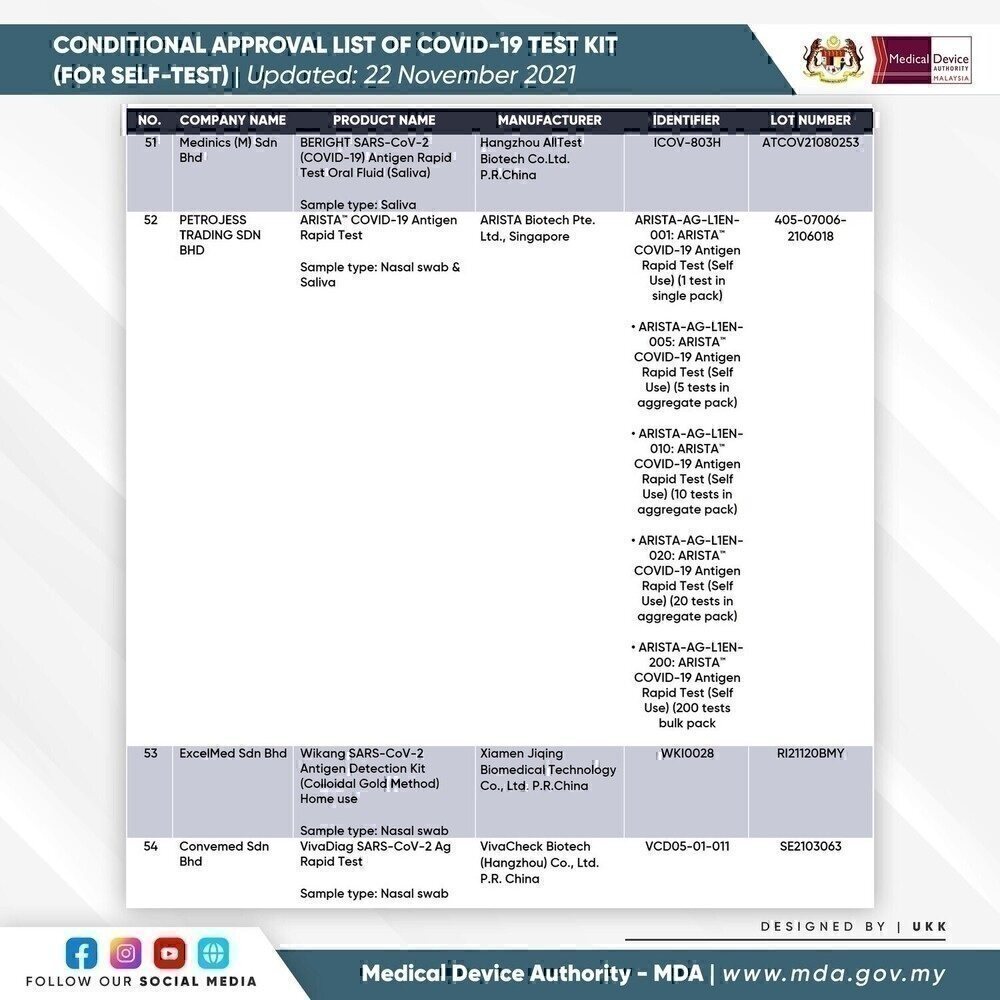 SELF-TEST COVID-19 TEST KIT FOR CONDITIONAL APPROVAL (APPROVED) - 22 NOVEMBER 2021