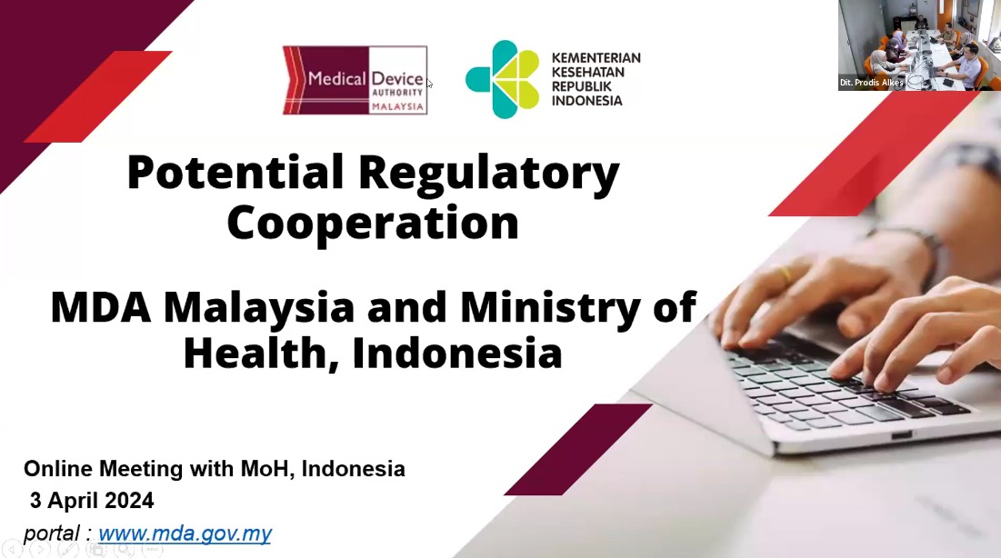 3 April 2024 - Mesyuarat Dua Hala antara MDA, Malaysia dan ‘Ministry of Health, MOH, Indonesia telah diadakan secara dalam talian bagi membincangkan potensi kerjasama regulatori dua hala yang akan dilaksanakan melalui pemeteraian MOU.