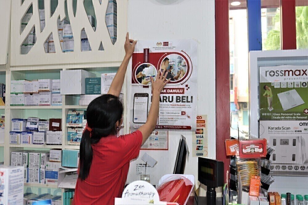 Sebagai tanda peringatan dari pihak MDA, farmasi yang telah dilawati menerima poster kesedaran berkaitan pembelian peranti perubatan berdaftar dengan MDA dan dipamerkan untuk saluran kepada orang awam.