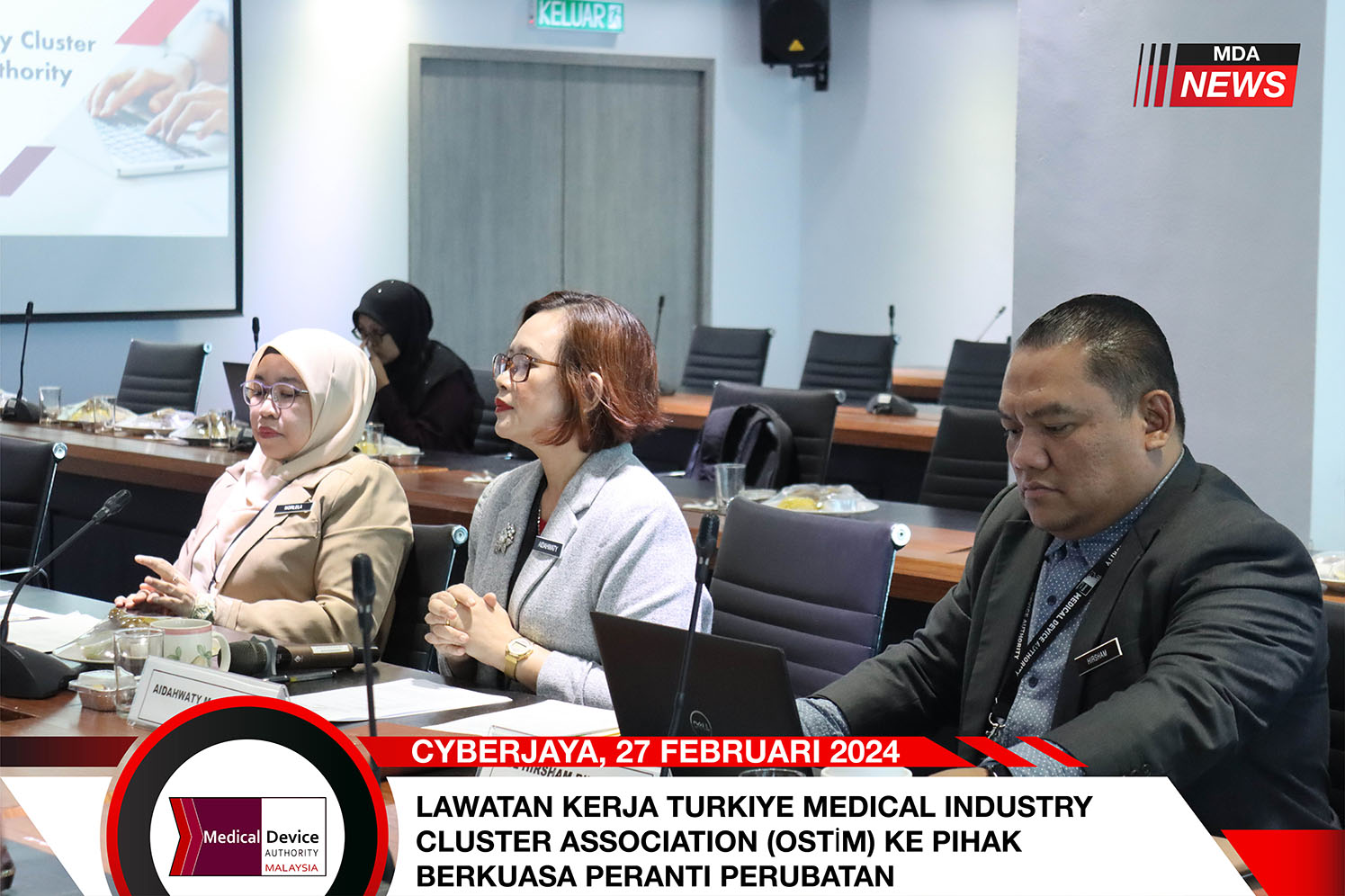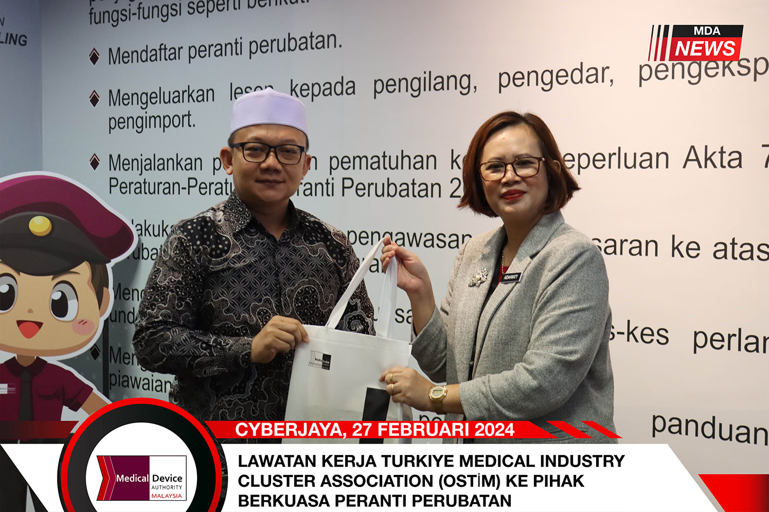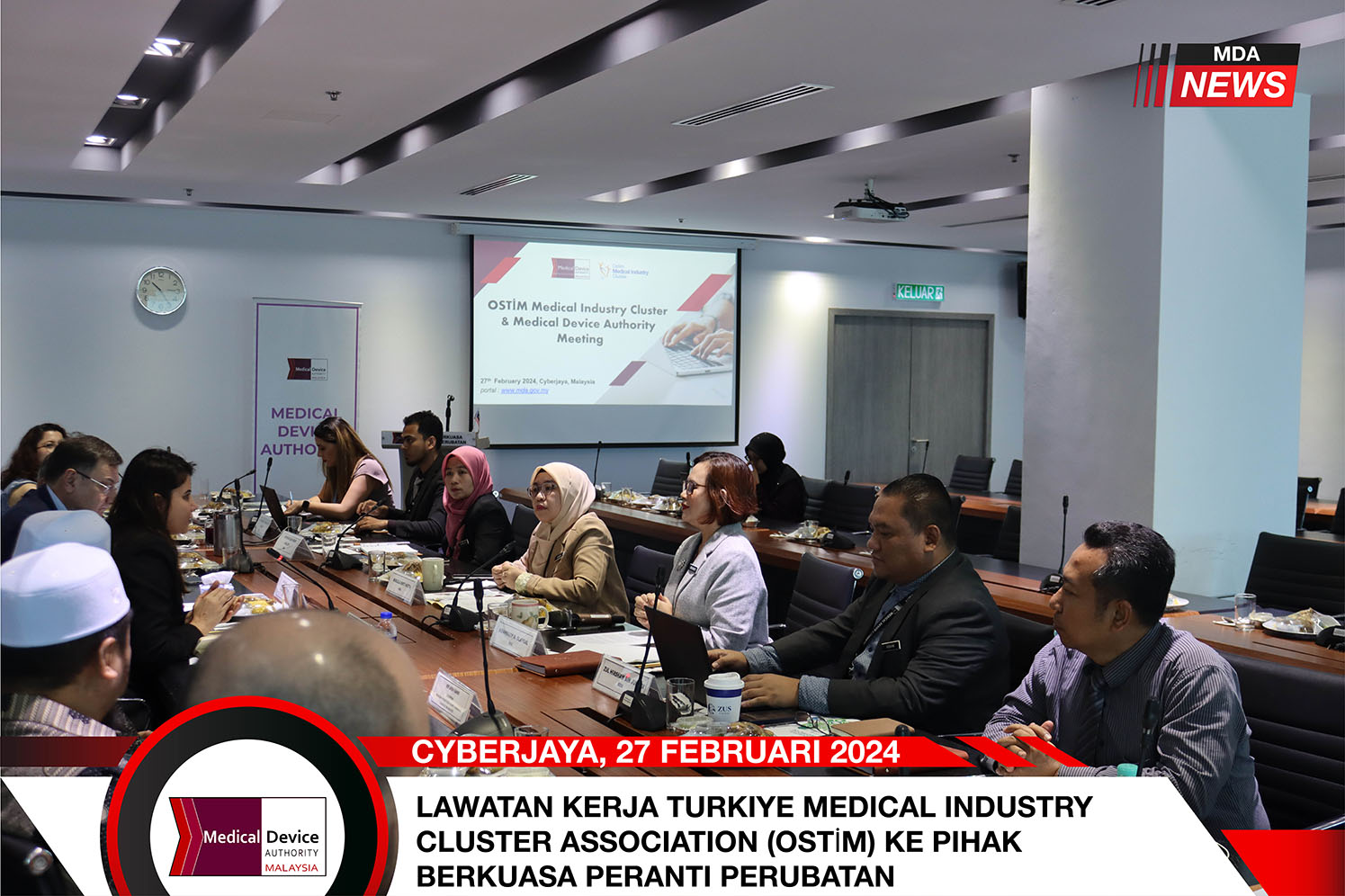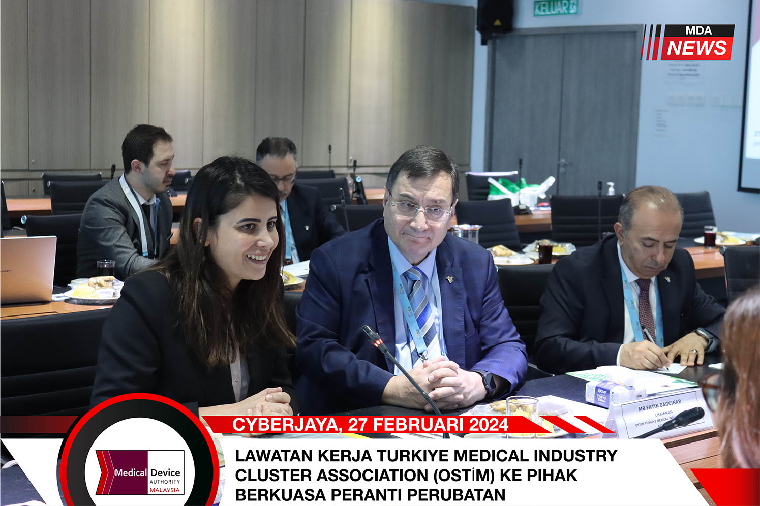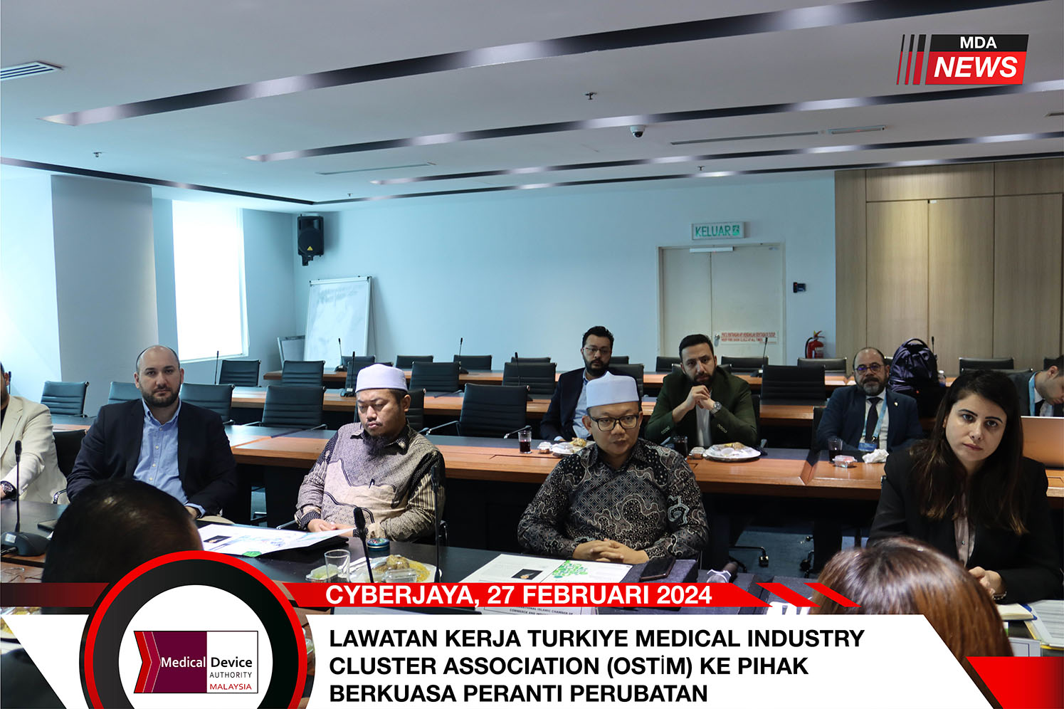 Cyberjaya, 27 Februari 2024 - Turkiye Medical Industry Cluster Association (OSTİM), yang mewakili 120 syarikat dan 37 rakan kongsi dari Turki, telah membuat lawatan kerja ke ibu pejabat Pihak Berkuasa Peranti Perubatan (MDA) di Cyberjaya hari ini.